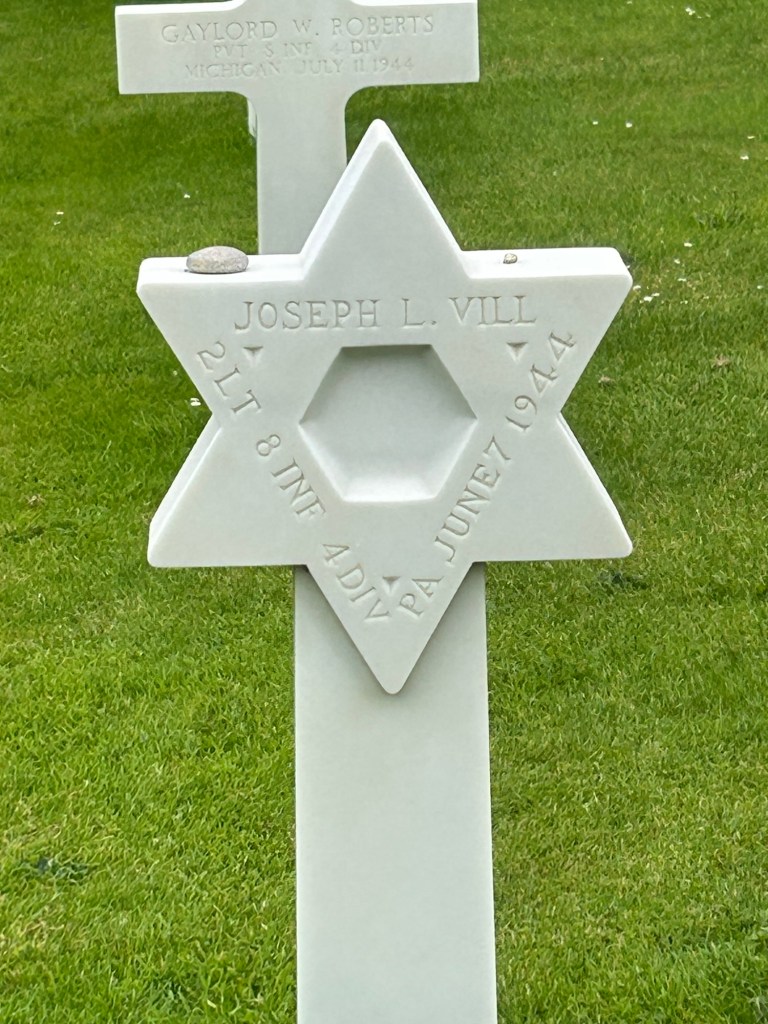 Next stop was Bayeux for lunch. It was a nice little town. After lunch we got some gelato and pastries. Then we drove over to the Normandie American Cemetery. There was a good size crowd there, which was nice to see that people haven’t forgotten. We saw the overlook, the chapel and the location of the time capsule. By chance we saw the marker of the only general killed during the landings, General Lesley McNair. I say by chance because he had the same cross as all the others. There were a handful of Jewish stars, at one location about 4. The cemetery was beautifully done.