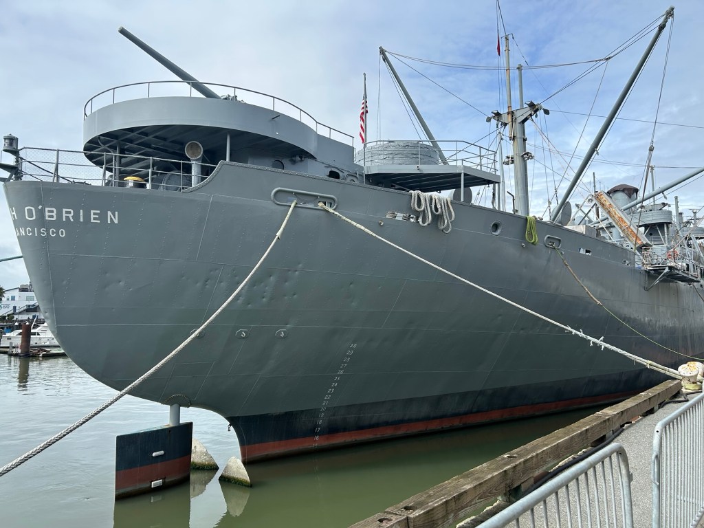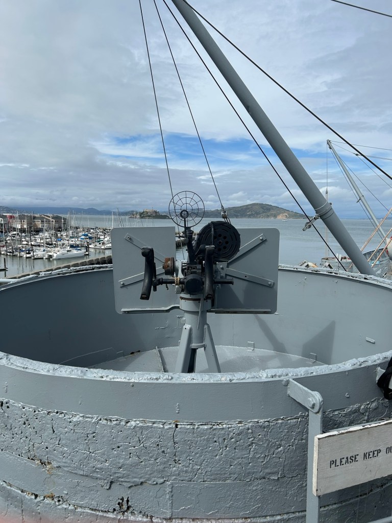Then I walked down to the Maritime Museum but it’s closed on Mondays. so I walked the wharf down to the Liberty Ship, SS Jeremiah O’Brien, one of two remaining ships, the other being in Baltimore. It wasn’t crowded and I got to wander all over it. I went down to the engine room which was cool.