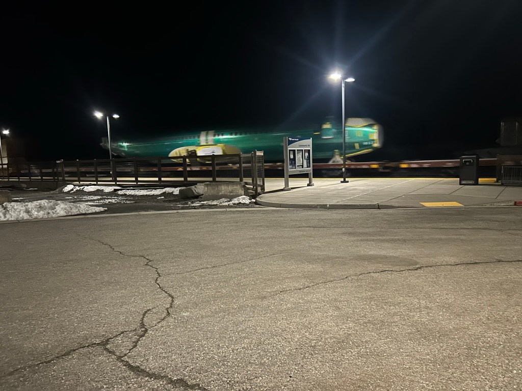 Surprise, surprise, the train from Leavenworth to Whitefish MT that I took last night was an hour and 25 minutes late. The usual reason, a freight train, actually two. And one of them had three airplane fuselages strapped down. See the picture below.